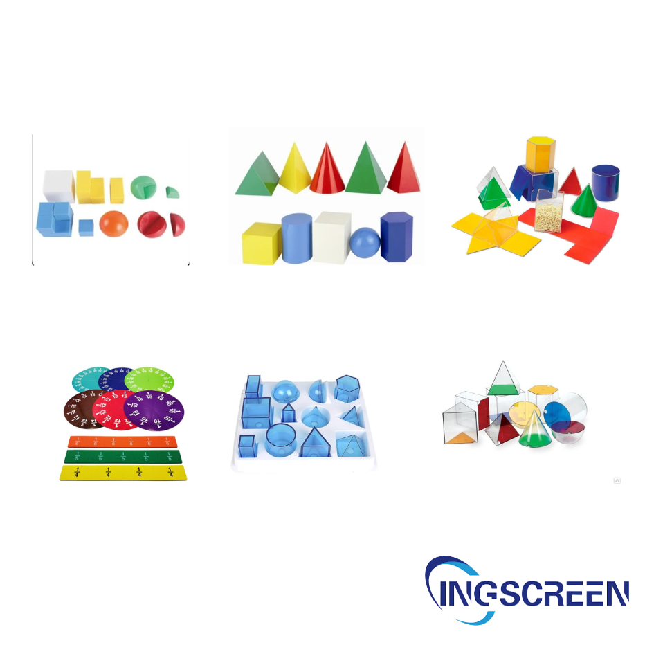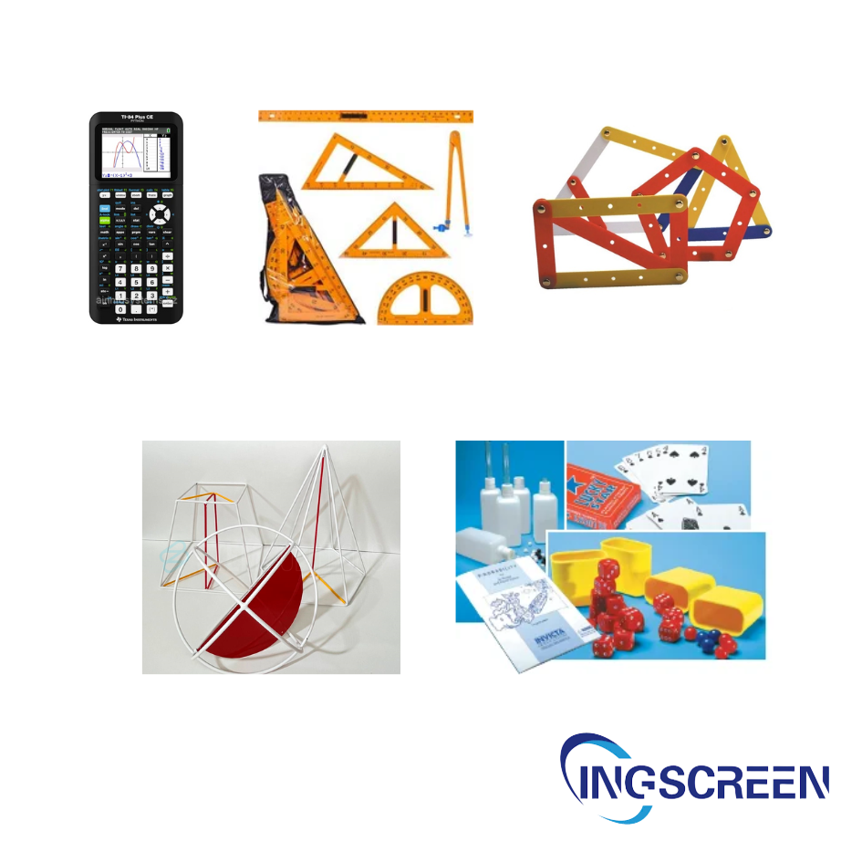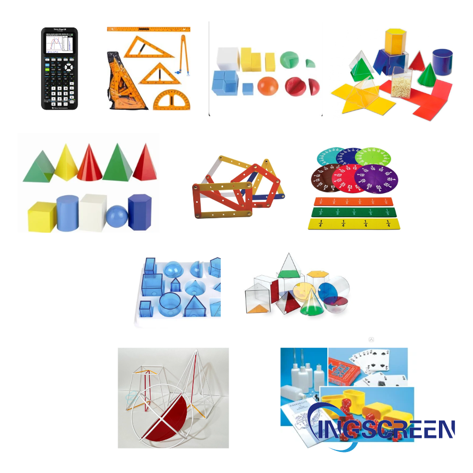 1. Graphing calculator with rechargeable battery. 2. Set of 5 drafting tools for the classroom board. 3. Demonstration set for cube and sphere. 4. Demonstration set of 3D geometric shapes. 5. Demonstration set of geometric shapes with nets. 6. Demonstration set of transparent geometric solids with sections. 7. Set for creating plane figures. 8. Set for studying the laws of probability. 9. Set “Fractional Parts of a Square and a Circle”. 10. Handout set of 3D geometric shapes. 11. Rod-based geometric shapes set for 13 working groups. 12. Didactic materials. 13. Handout materials. |